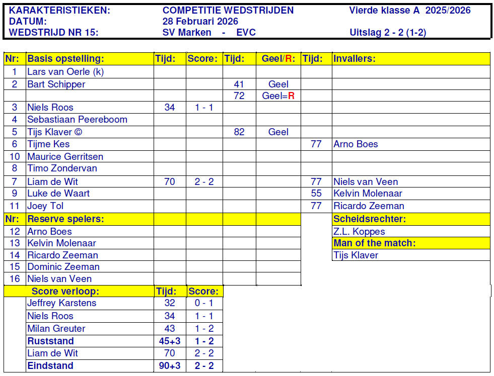 ons standaard team. En gelijk een pittige tegenstander EVC