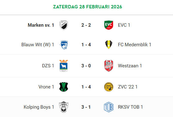 meer gevoetbald werd kwam Marken op gelijke hoogte. Uit een